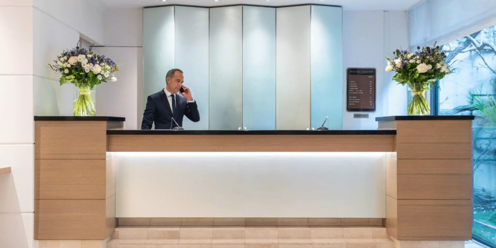 Disponible 24h/24, notre équipe attentionnée est à votre disposition pour répondre à vos besoins et vous guider dans la découverte de la ville bleue.